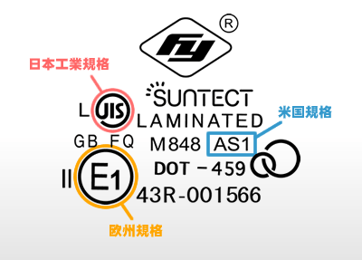 JISマーク(日本工業規格)はもちろん、その他Eマーク(欧州規格)、ASマーク